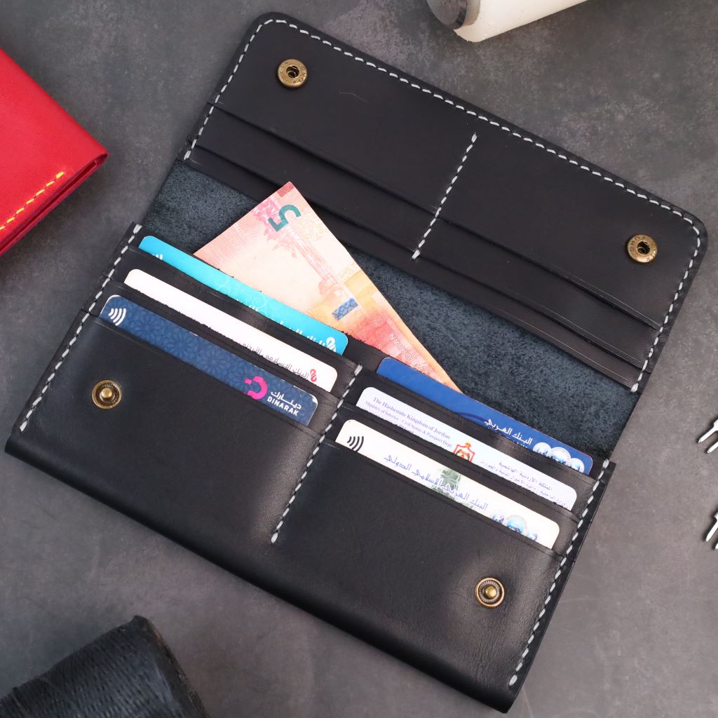 صُنعت كل حقيبة كلاتش يدويًا من جلد طبيعي مستدام، وتستغرق صناعتها عدة أيام. يُميز حقيبة كلاتش كونتيننتال هذا الاهتمام بالتفاصيل، بالإضافة إلى أن كل قطعة جلد لها طابعها الخاص. لا يوجد مثيل لها. تحتوي مساحتها الداخلية الرحبة على ١٠ فتحات للبطاقات وجيبين للنقود. اختاري لون الجلد الطبيعي والخيوط الذي يناسبكِ ، واجعليها تُعبّر عنكِ تمامًا مع شعاركِ المنقوش.